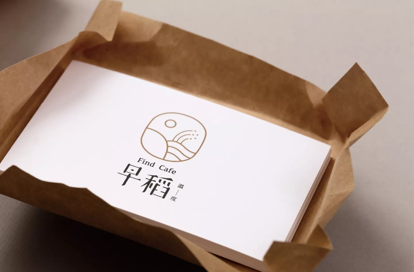 The font is set to be simple and straightforward. It defines the professionalism and solidity of Japanese businessmen have towards cuisine. The logo uses gold as the standard color, combining simplicity and splendor, and blending elements such as “sunshine”, “water”, “fertile soil” and “wheat”. Together, these elements symbolize the vigor and life in every meal in “Find Cafe” and their richness and freshness in every ingredient. The image of sheaves of wheat echo the Chinese letter “稻”, which means rice, in the brand name “早稻”. It resembles humility, just like the sheaves bend over when the wheat on top becomes too heavy. The white space resembles the Japanese idealism and purity.