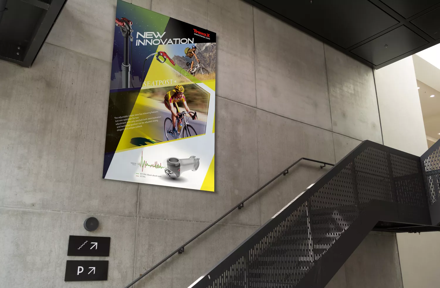 老品牌TranzX ,外銷歐洲英國,德國,「專門」極限運動器材設計。速度感與性能,是腳踏車的重要特點。以色塊交錯的方式去帶出整體動感,強而有力的感官視覺,只要一瞥過,便會抓住消費者目光,同時此種表現方式,亦顯出本產品的高機能性,使愛車者能掌握住本產品的特點,一目了然。