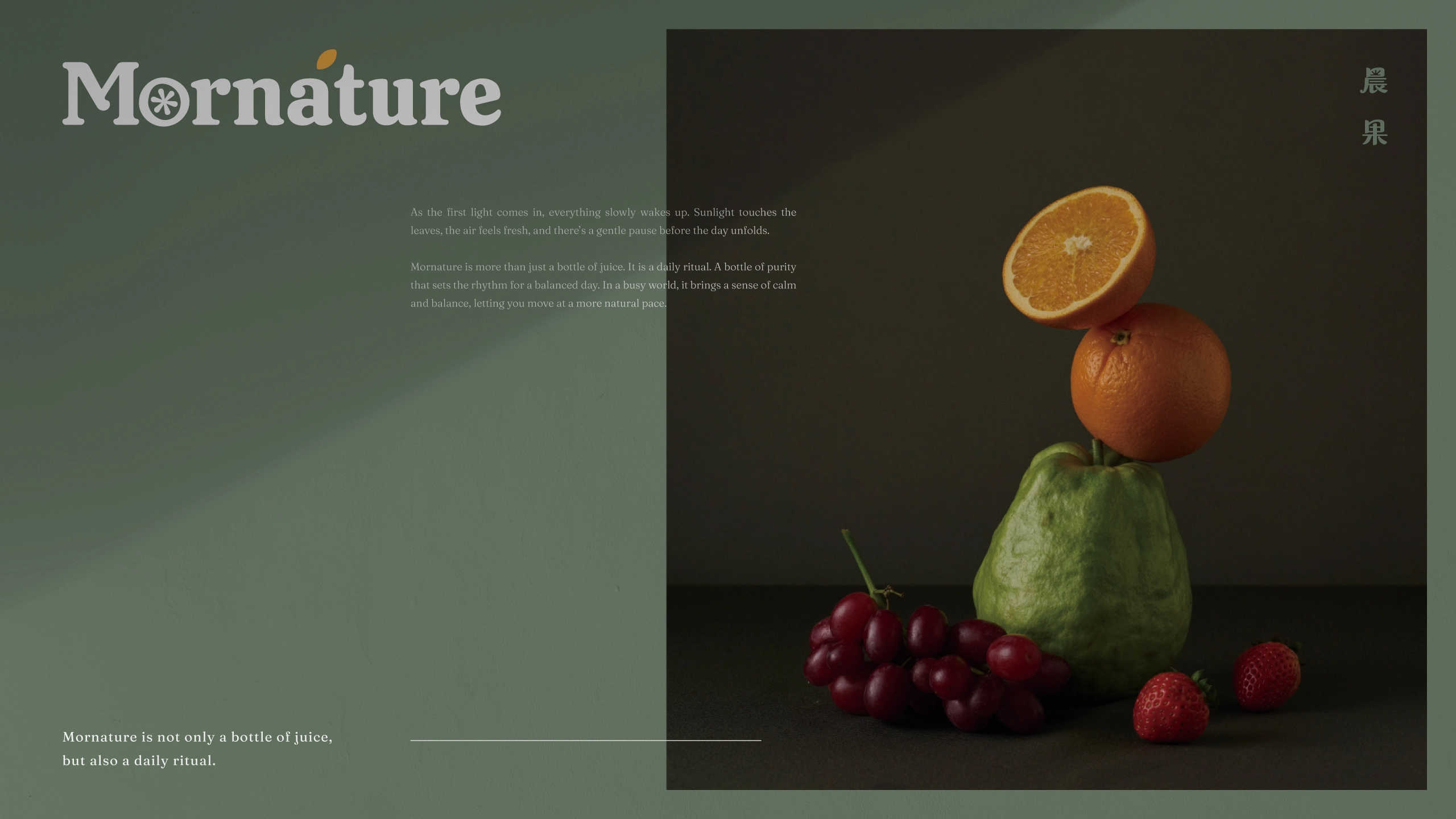 晨果 Mornature,取自 Morning 與 Nature 的結合,捕捉清晨第一道光落下、大地緩緩甦醒的瞬間。